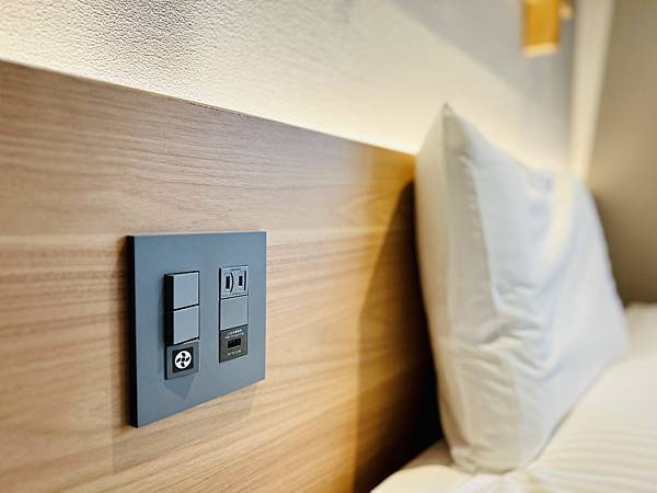 書桌附有一個拉動式的板子,因此在房內用餐或擺放辦公文具筆記本時也不會覺得空間不夠用。而且床邊兩側皆有USB插座喔。
